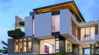 + Tầng 1: Gara Oto + Sân vườn + Bể bơi + Phòng khách + Sảnh thang + Phòng bếp nấu + Bếp ướt + Phòng ăn