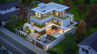 + Tầng 2,3, Tum : Gồm 02 phòng ngủ VIP + 02 phòng ngủ khép kín + 01 ngủ khách + Phòng thờ + Phòng hát + Bể bơi vô cực trên mái + Chức năng phụ trợ