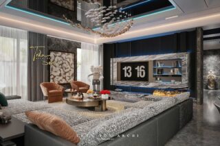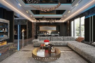 Không gian biệt thự được xây dựng theo tinh thần Modern Luxury, kết hợp hài hoà giữa vật liệu cao cấp – ánh sáng nghệ thuật – đường nét cá tính, tạo nên một tổng thể sống sang trọng, đẳng cấp và đầy chất riêng.