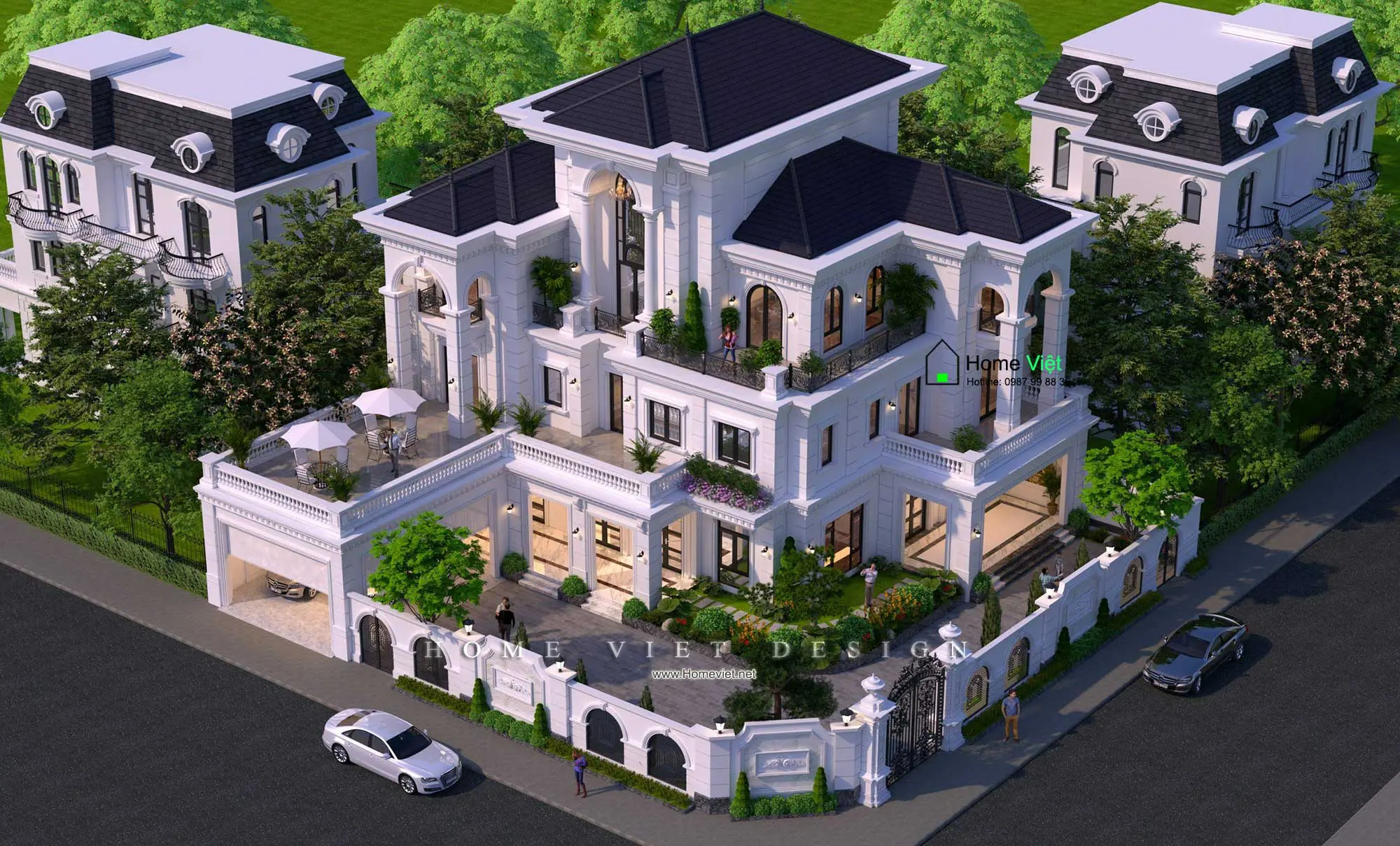 + Tầng 2,3, Tum : Gồm 02 phòng ngủ VIP + 03 phòng ngủ khép kín + Sinh hoạt chung + Phòng giải trí + Phòng thờ + Sauna VIP và các chức năng phụ trợ.